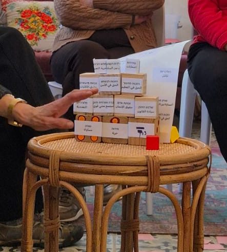 בחודש מרץ השנה השתתפתי בקורס של מדרשת אדם להנחית סדנאות בנושא דמוקרטיה. באחת מהפעילויות קיבלנו דף של מדבקות בהן כתובים ערכים הקשורים לדמוקרטיה. קיבלנו גם קוביות בכל מיני גדלים וצבעים. המשימה של כל קבוצה היתה להדביק מדבקות על הקוביות ולבנות את המגדל של הדמוקרטיה.