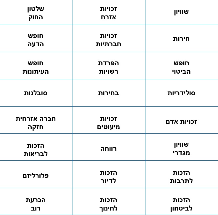 בישראל קיימים רוב המוסדות הללו – החל מעיגון זכויות בחוקי יסוד, דרך בחירות כלליות וחופש התאגדות, וכלה בחופש הביטוי והעיתונות. ובכל זאת, הקיטוב הציבורי מתעצם והשיח נעשה חריף ומקוטב. ייתכן שמבנה השלטון הקואליציוני תורם לכך, וייתכן שעדיין לא מצאנו את המנגנון האידאלי לקבלת החלטות דמוקרטיות. כיוון אפשרי לעתיד הוא פיתוח שיטות הסכמה דליברטיביות, המעמיקות את ההידברות בין קבוצות שונות ומנסות לגבש הכרעות שאינן רק תוצר של רוב מול מיעוט, אלא של שכנוע הדדי וחיפוש אחר מכנה משותף רחב יותר.
